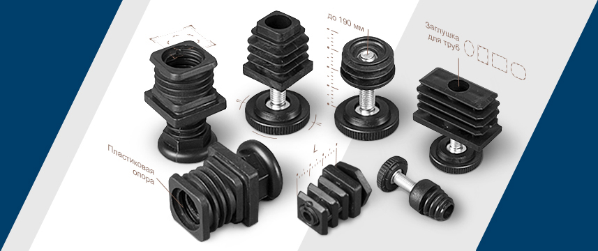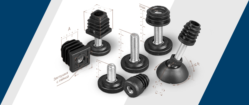 Опоры для мебели, оборудования, техники и аппаратуры (резьбовые, регулируемые, универсальные).